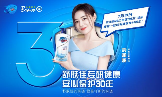 2022年,舒肤佳迎来了自己进入中国的30周岁生日。值此之际,舒肤佳携手永辉超市,特邀舒肤佳健康官袁姗姗,在福建福州开启了舒肤佳30周年庆祝活动的第一站,与福州的朋友们共同见证舒肤佳30周年的守护故事。