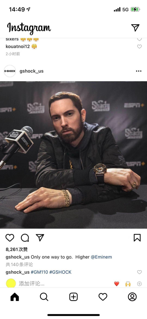 Rap God姆爷曾放言,“我有很多名表,但我更愿意戴G-SHOCK。”