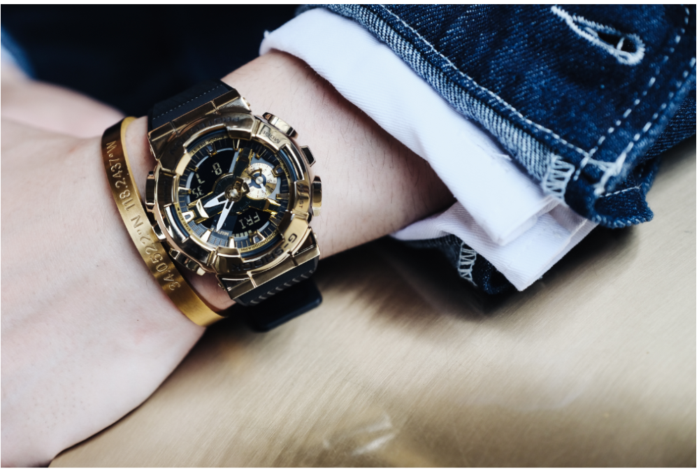 的确,这么多年来,对G-SHOCK的热爱,姆爷从来不藏着。近日,姆爷身穿一身黑色休闲服现身某发布会场,佩戴在腕间的G-SHOCK GM-110金色款“小钢炮”再一次成为吸睛焦点,引起了不少G粉的关注。