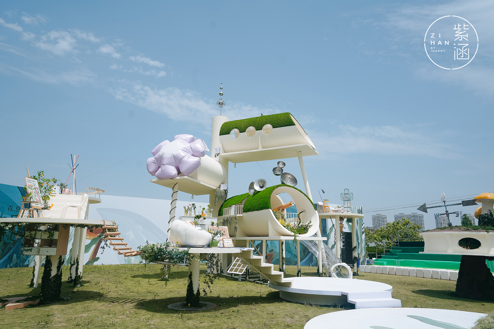 伴随着乐园的播报声与市集的欢声笑语,我们跟随时空飞船来到了“生生乐园”,会逆向生长的绿植,巨型的蘑菇和温暖的花房,将森系、文艺、趣味的品牌风格极致地展现了出来。