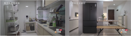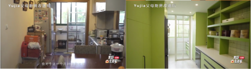 退休夫妻Yujia父母喜欢做本帮菜,老式的厨房收纳混乱,装修老旧,改造官@张烨巧用中西厨分隔设计,增加巨量收纳空间,用美的厨热轻净产品系列帮助叔叔阿姨用智能化产品解决厨房油烟、洗碗问题,体验“色彩混搭”智能时代。