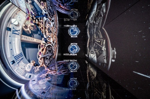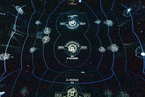 展览现场设有360°沉浸式体验空间将宝玑的历史故事于漫天星河中娓娓道来,令人仿佛置身浩瀚宇宙。旋转不停的陀飞轮,汇集了宝玑先生对天文学、物理学等多项学科的融会贯通与天才巧思,如同照亮夜空的璀璨繁星,诠释隽永而纯粹的宝玑风格。