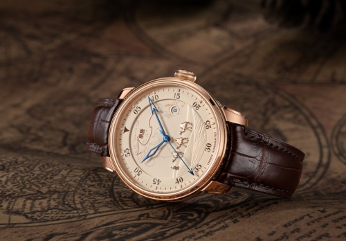 千帆蔽日,七下西洋,六百年前中国的伟⼤航程,不仅以其征服⼴袤的海洋而显得波澜壮阔,更以其威远服⼈、君临天下的⼤国⽓度而光耀万邦。鼎唐将这光耀史册的成就凝刻于表盘,并辅以陀飞轮这⼀复杂制表技艺,打造出领航系列表款,致敬郑和向世界展示中国的强盛,意为“领航”。