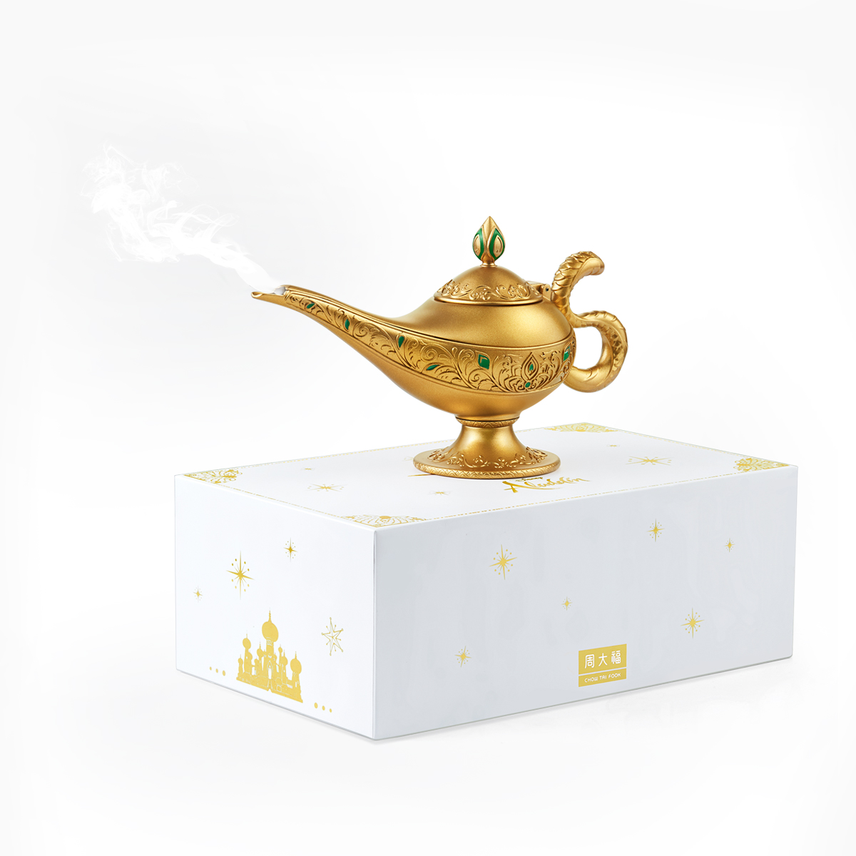 阿拉丁灯神新品配有精美的神灯首饰盒,除了造型复刻打造,还有原味神秘氛围。轻轻摩挲三下,便有魔力烟雾氤氲开来。